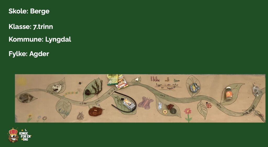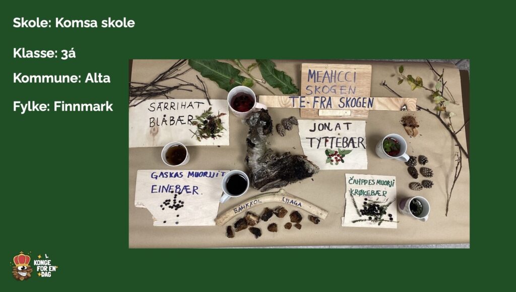 Tema for årets Kong(l)e for en dag var spor og sportegn, og elevene kunne velge mellom oppdragene Land art i nærskogen, skogen som matfat, og nedbrytningstid til avfall i skogen.