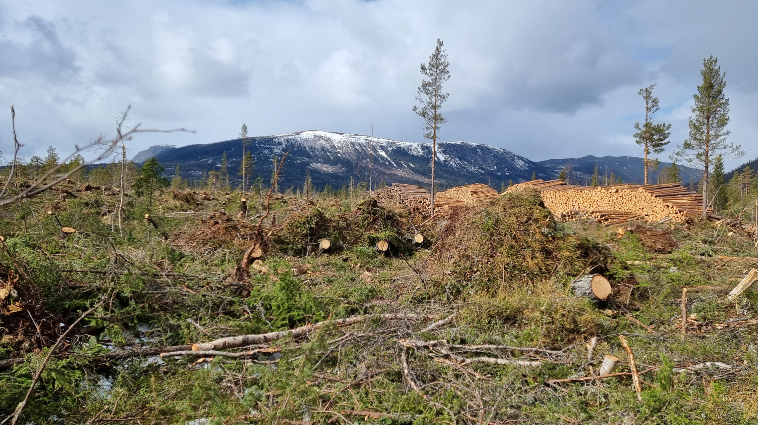 Under stormen på Østlandet i vinter blåste det ned veldig mange trær. Etter at tømmeret nå er skåret løs og kjørt vekk, står rotveltene igjen. De har frosset fast. Men, nå på våren tiner de og kan plutselig klappe sammen.