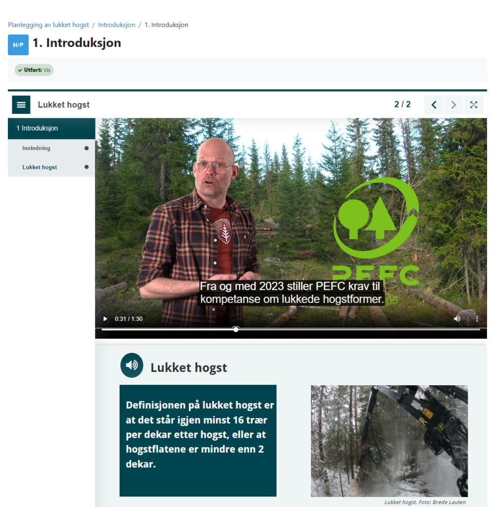 I år vil arbeidet med kompetansepakken dreie seg om omstilling til lukkede hogster. Her vil det utarbeides nettkurs og benytte VR-teknologi og bygges feltkurs med instruktør.